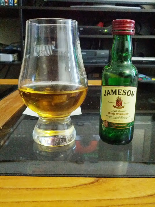What do I do instead? I go to Irish, and try out a general entry level Irish everyone has tried at some point, Jameson Irish Whiskey. Actually I notice that I have a sample dram that my parents recently passed along to me, as it was sitting around and no one was drinking it.