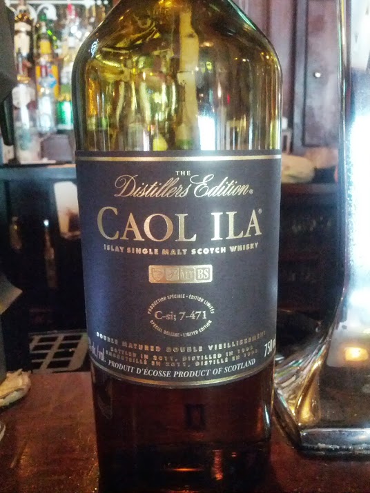 So when we ended up in a new bar in a different city this past weekend, I was ready for disappointment… Until I noticed that they had Caol Ila Distiller’s Edition on the shelf. Throwing caution to the wind (expecting a higher price than usual), I decided it was a good time to try out this dram.