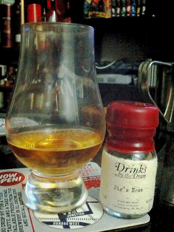 Because we have to do Blends. They account for over 90% of the whisky sold in the world. Some blends are rather tasty. Johnnie Walker and such (some of them, at least). We’re not doing Johnnie today though. We’re doing Pig’s Nose.