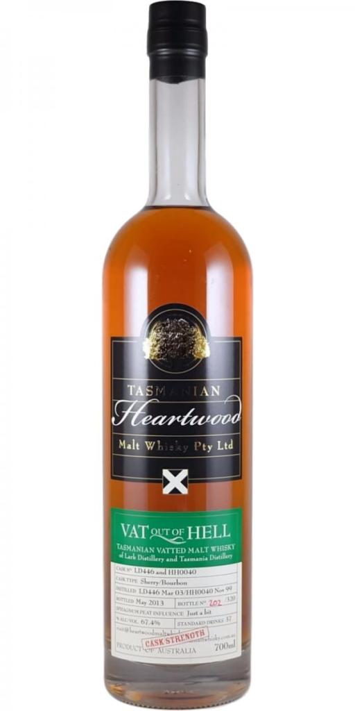 Up first, we have Heartwood Vat out of Hell. It’s a combination of a 10 year old Lark Sherry Barrel & 13 year old Tasmanian Distillery Bourbon Barrel. Also it’s cask strength as hell.