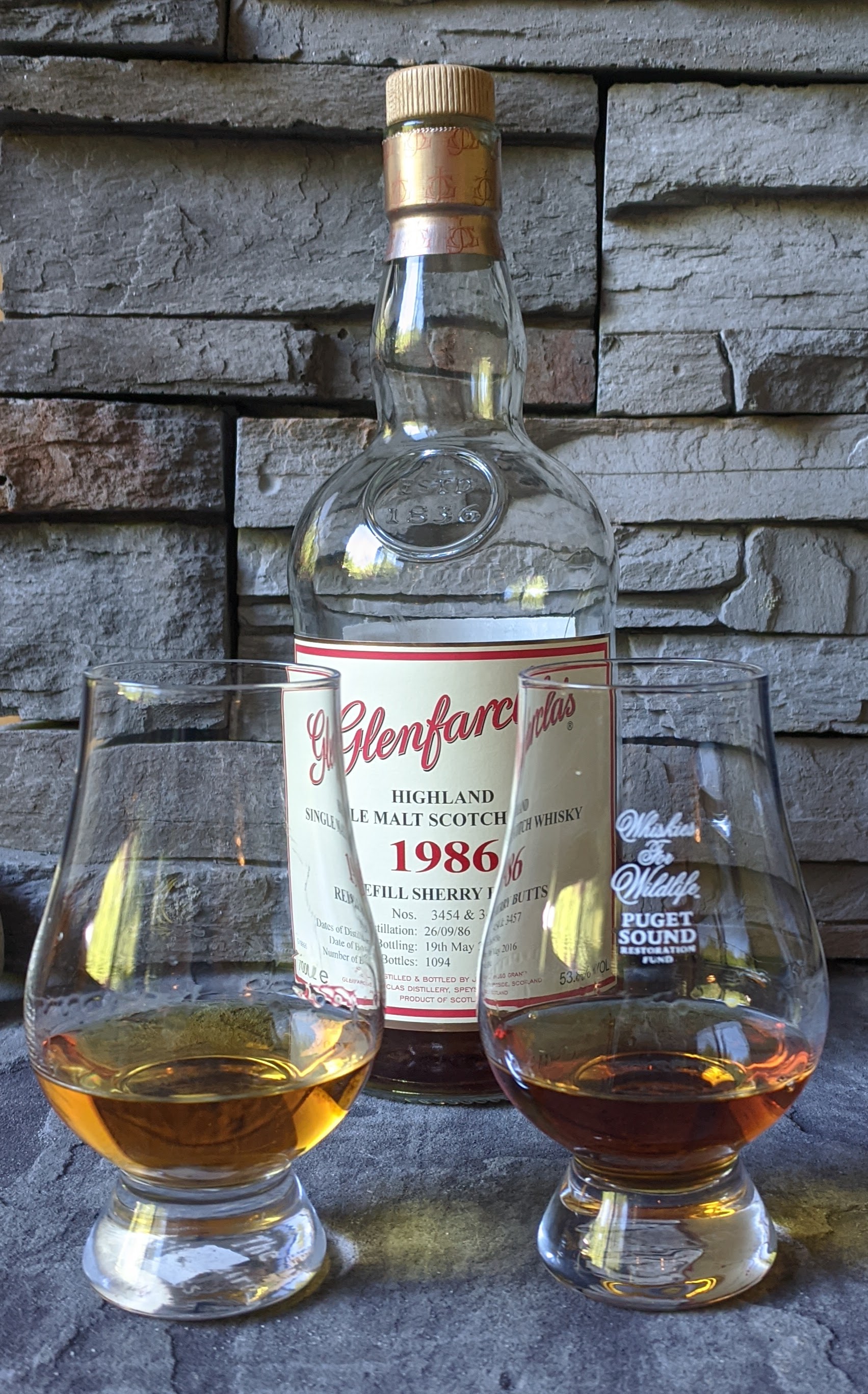 Glenfarclas 1986 Refill Sherry Butts, distilled 1986/09/26 and bottled 2016/05/19 making it just shy of 30 years. So I suppose we should call it 29. Just two casks, #3454 & #3457 for a total of 1,094 bottles.