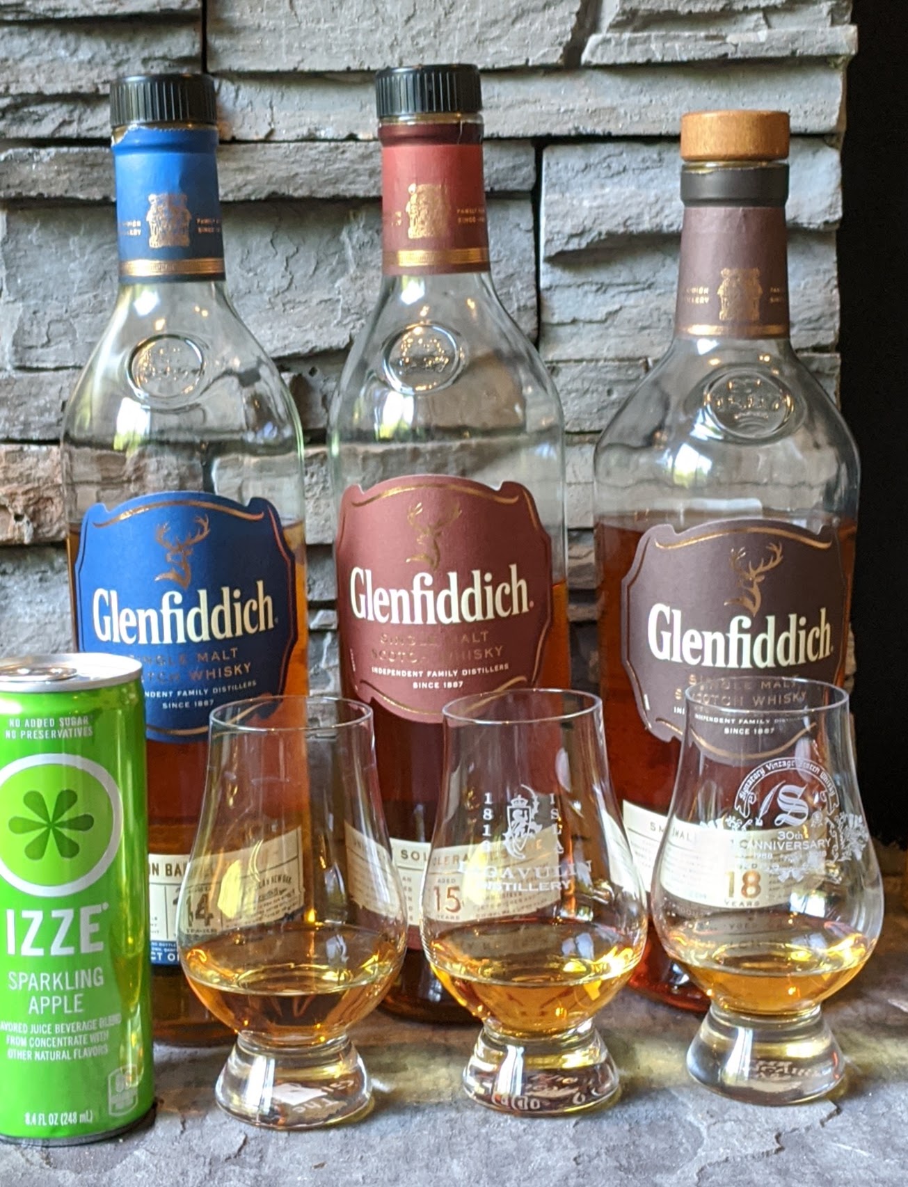The color is lighter than the Glenfiddich, which are (not surprisingly) all the same color. Tasted chilled and neat in a Glencairn.