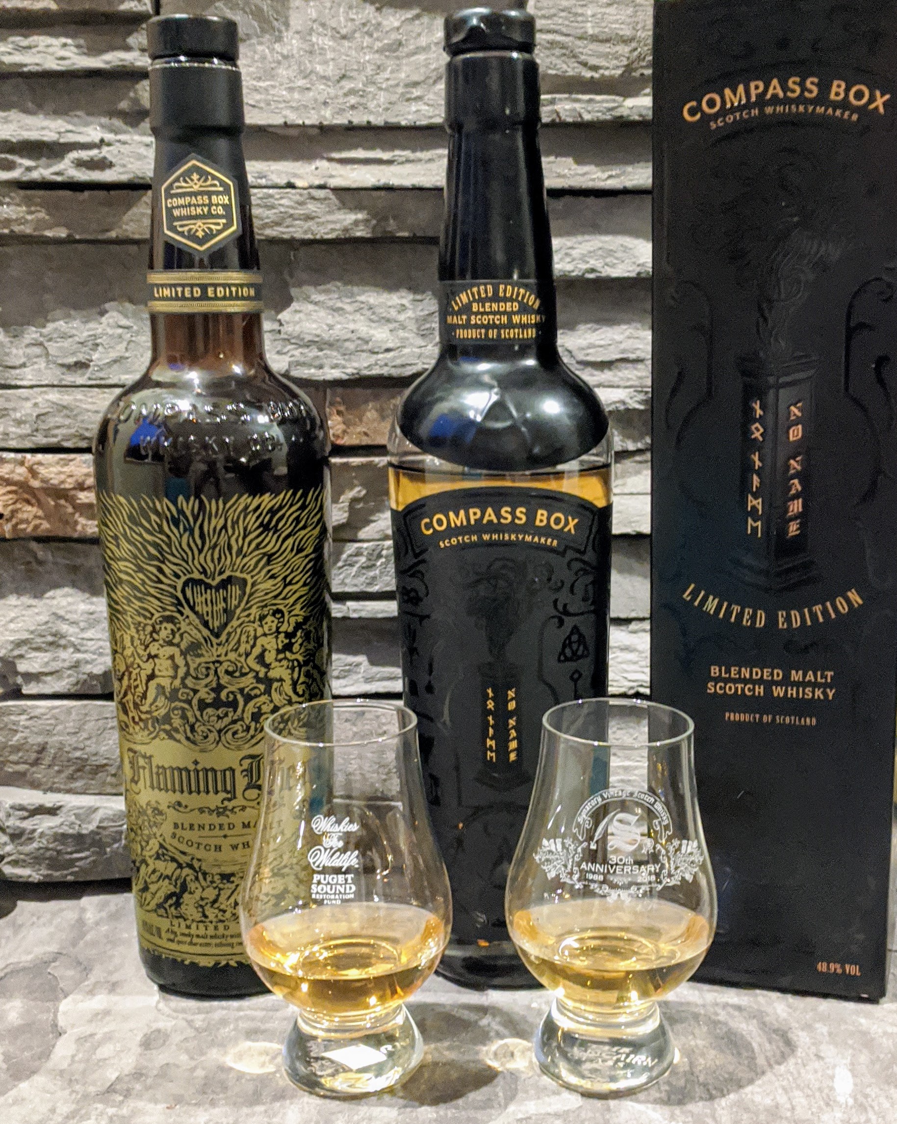 The No Name is more complex, with a better profile and finish than the Flaming Heart. A much more interesting dram for sure, and of course I dig the big peatiness of it. The Flaming Heart is an easy drinker that would be great for people who’ve been getting into peat and like their whisky a bit spicy.