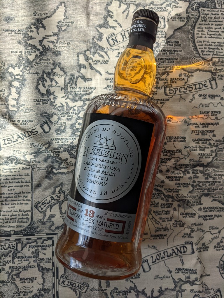 My experience so far has been similar between sherried Springbanks and Longrows, but having never before tried Hazelburn (their unpeated, triple-distilled spirit) I wanted to see if it would strike a better chord for me. This series of fully-matured Oloroso yearly releases came to me highly recommended, so I decided to give the distillery one more go in full sherry maturation– crossing my fingers that if sulfur was present, it would not take over the entire conversation in the glass.