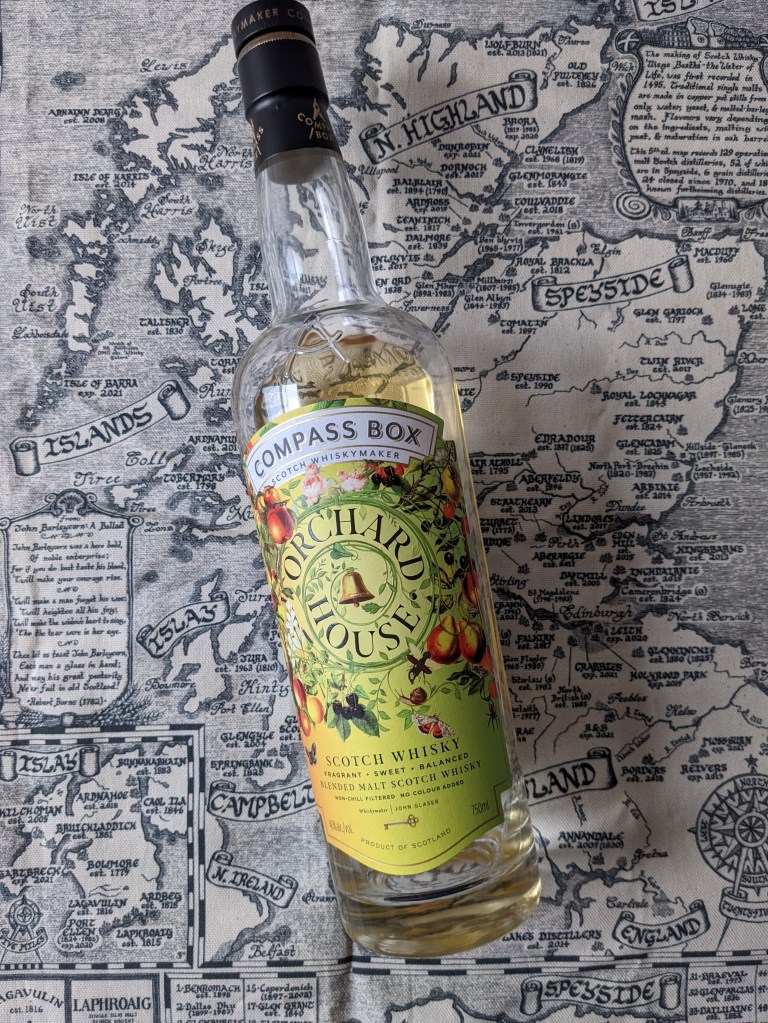 It’s been quite a while since I reviewed a Compass Box: I’ve been waiting for one where a reasonable price point aligns with blending ingredients that really interest me, often I see a new release that satisfies one or the other, but not both. That changed last year when Orchard House became part of their core range, a blended malt coming out between $40-$60 regionally and with a core of young Linkwood, Clynelish and Benrinnes (perking up the ears of a number of IB enthusiasts.) The full makeup of the blend, as CB describes it, is included below (matured in first-fill bourbon barrels unless otherwise noted):