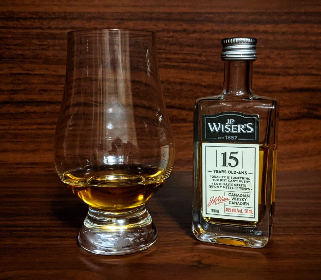 I usually don’t drink or review very much Canadian whisky, but my best friend gifted me this gorgeous official miniature of J.P. Wiser’s 15, so I’ve got to pour it and take some notes. Given how ubiquitous this whisky is at liquor stores here in Ontario, I’m surprised that there are only a few reviews of it on Reddit.