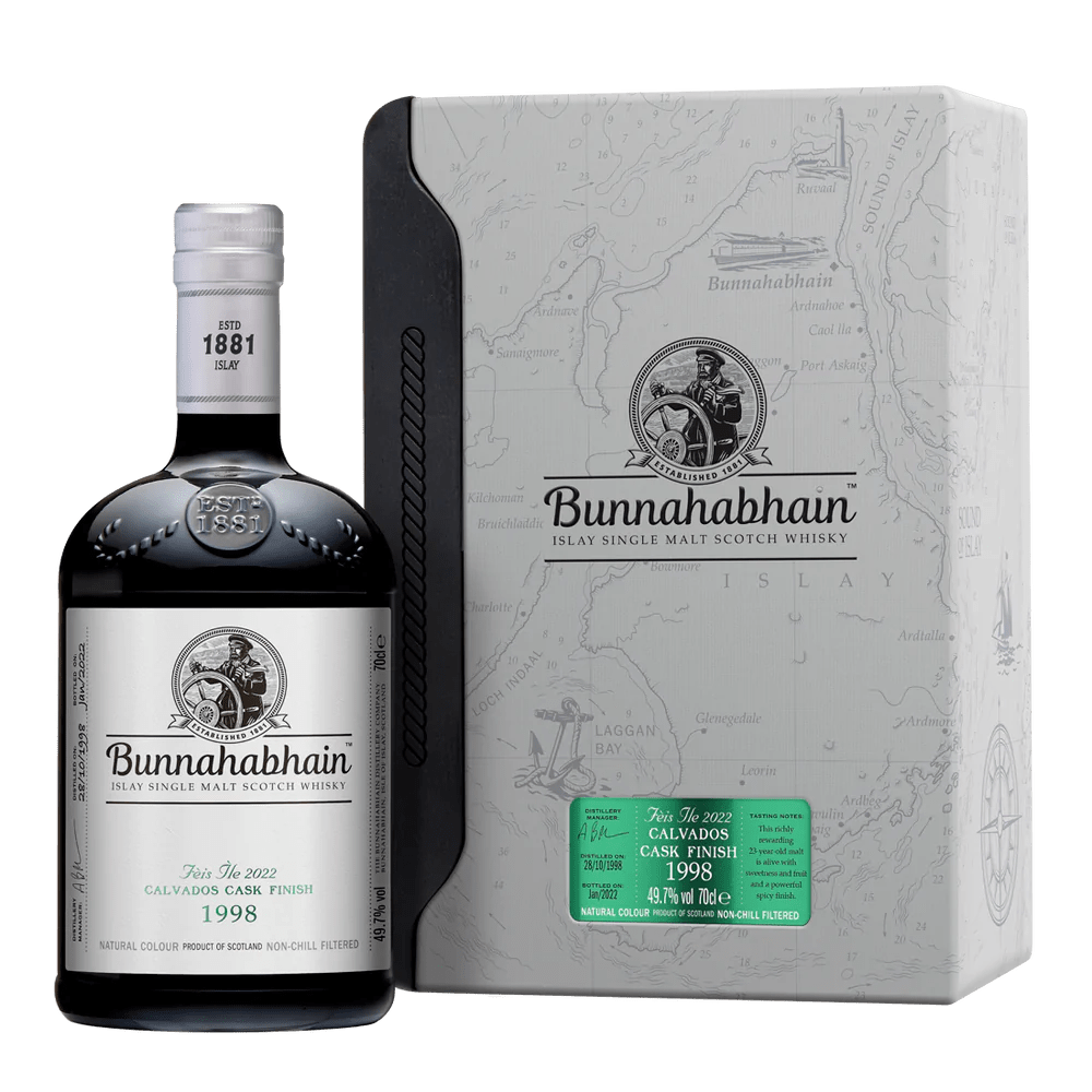 I took so long to post all my reviews from my whisky club’s last tasting that we’ve already had another tasting. This one was exclusively white-label Bunnahabhains! To start off, here’s one of this year’s Feis Ile releases, finished in Calvados casks. This’ll be my first Calvados-matured whisky – very exciting, even if it comes in this ridiculous giant box.