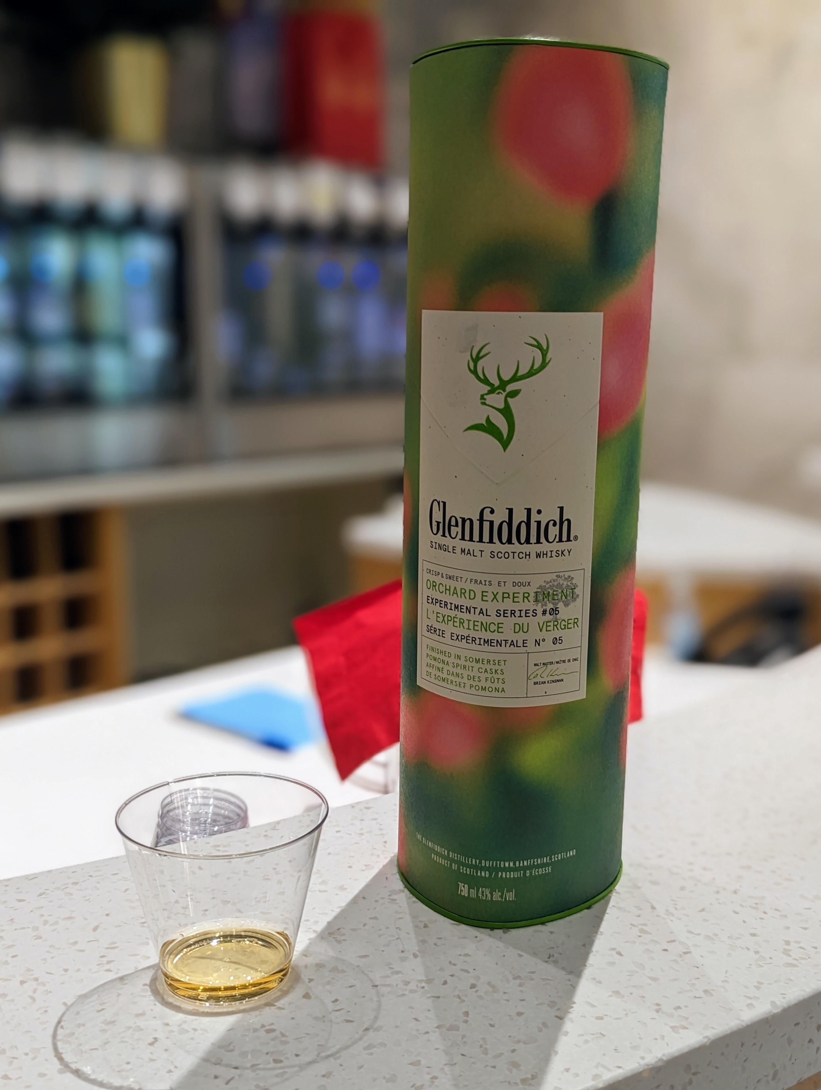 Ahhhh, it’s nice to be back at the famous LCBO tasting bar – the cheapest place in town to start pre-drinking with good whisky before going a party. I started last night off with this latest entry in Glenfiddich’s Experimental series. I’ve had mixed opinions on the prior bottlings in this line – the IPA Cask and Fire & Cane impressed, but XX and Winter Storm fell somewhat short. Here, we have a cask finish in “Somerset Pomona Spirit” casks – this is a blend of apple cider brandy and apple juice, produced by the Somerset Cider Brandy Company in Somerset.