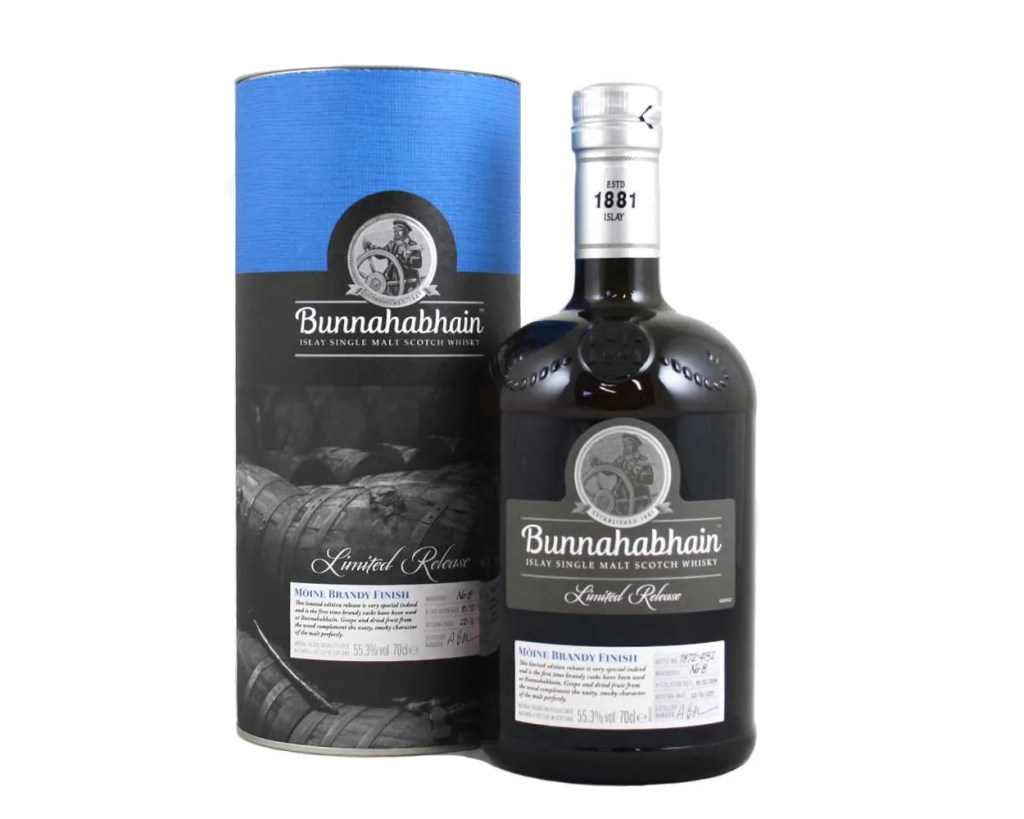I’ve tried a bunch of Bunnahabhain’s “Moine” peated bottlings at this point. The distillery is apparently cutting back on these peated runs in favour of more of the classic unpeated Bunnahabhain – I can understand why, but personally I think that’s a shame. Moines have this wonderful nutty savouriness, and are in my experience bring the meaty umami flavours more consistently than any other peated whisky from Islay. That character also pairs very well with sweet casks, hence a long line of Moines with wine-finishes.