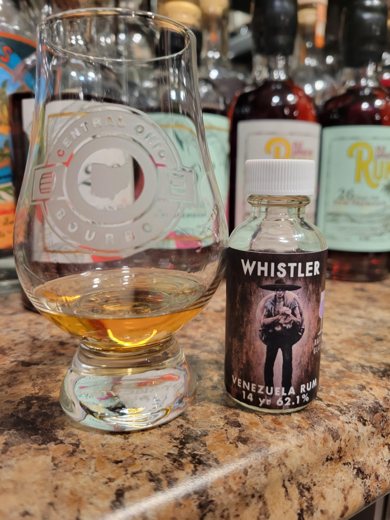 This bottle of rum (or sample in this case) we have here is from Raising Glasses, an independent bottler located in the Northeast of the United States. Hot off of 4 single casks in 2022 they have these new casks coming soon that I will be trying. This single cask of rum comes to us from Venezuela (RG was not allowed to disclose but I would venture to guess its Corporacion Alcoholes del Caribe S.A). This molasses based rum was distilled on a column still, aged for 12 years in Venezuela, then a further 2 in the UK. It was then bottled at cask strength with no additives.