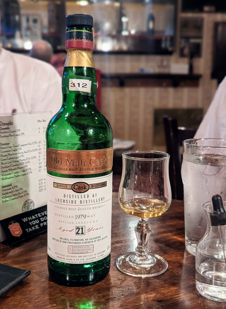 Onto dram number four of my crazy whisky week, following from that Linlithgow, the ’66 Jura, and the Clynelish Ainslie & Heilbron. This will be my second Lochside, following a Gordon & MacPhail bottling that I tried a couple years ago. That one was weird, but tropical and tasty. Will this one be similar?