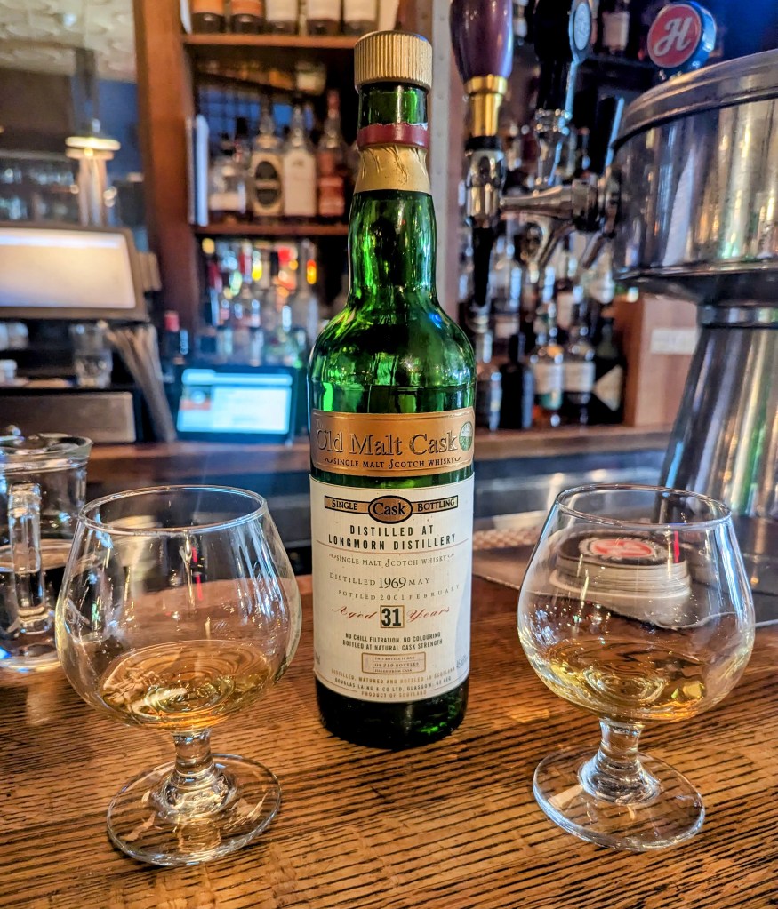 Dram 5 of the week, and the start of night 2. it turns out that The Feathers isn’t the only pub in town with extremely well-priced ancient whisky. There is another…