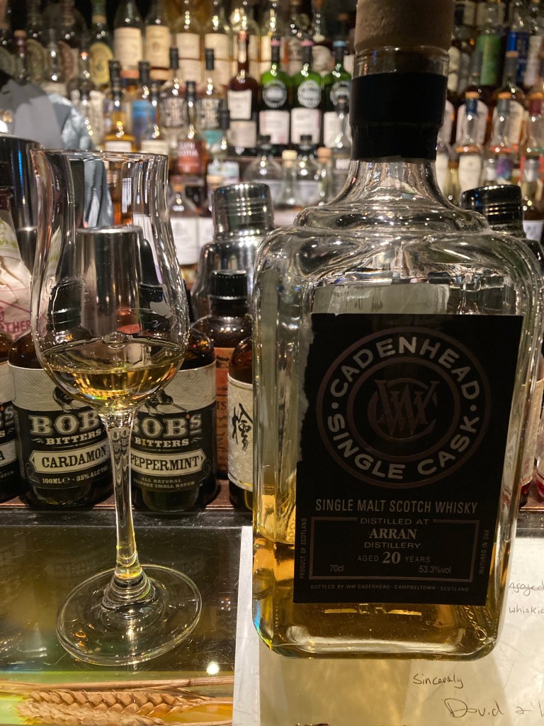 Ah, the old Cadenhead’s small batch/single cask square bottles. Used to be some of the best values in Scotch. Sadly, there are few values left in Scotch, and these are gone except for some old stock, replaced by the Original Collection at 46%. Which all seem pretty young, too, at least what I’ve seen. So I was pretty pleased when I asked the bartender if he had any Arran in sherry, and he brought this out.