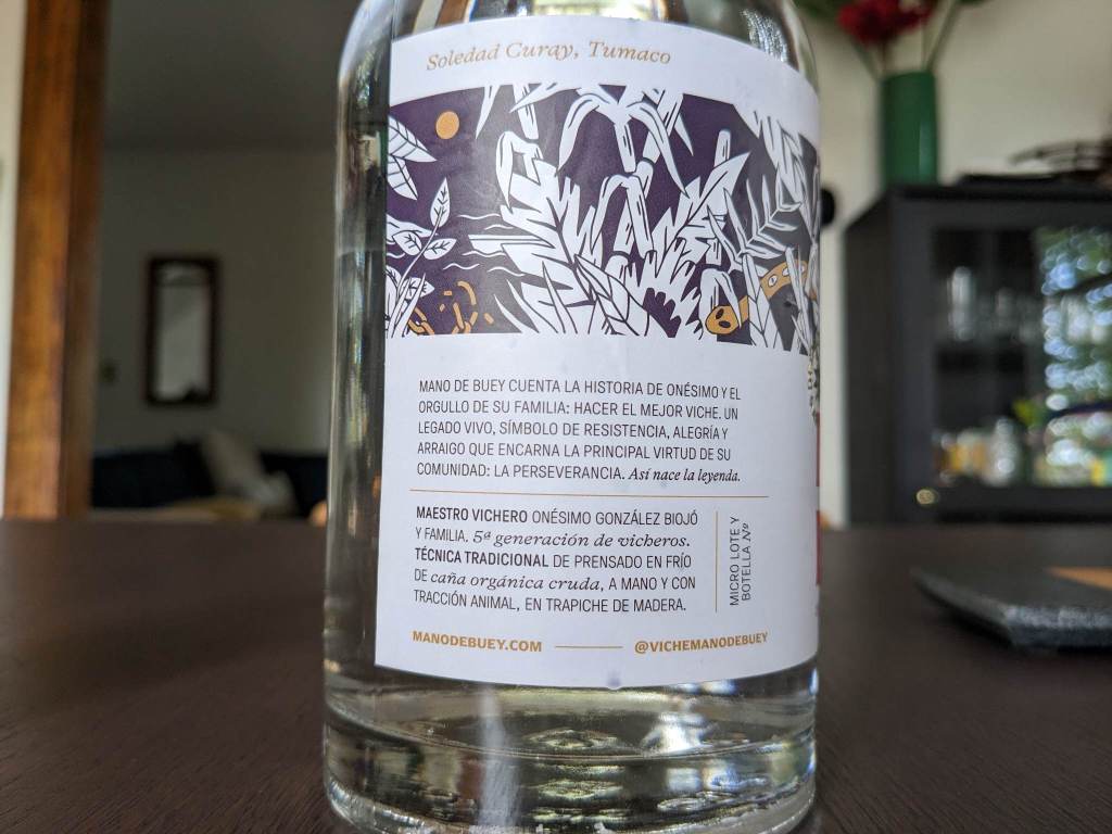 This spirit here is Viche, a sugar cane spirit from the Colombian Pacific. Being that it is a Viche, it can only be crafted by those of Afro-Colombian decent in the Colombian Pacific as it is part of their culture and heritage. This falls in the departments (states) of Narino, Cauca, Valle del Cauca, and Choco. Mano de Buey is produced in Soledad Curay, a village wihin the Tumaco inelt, in Southern Colombia.