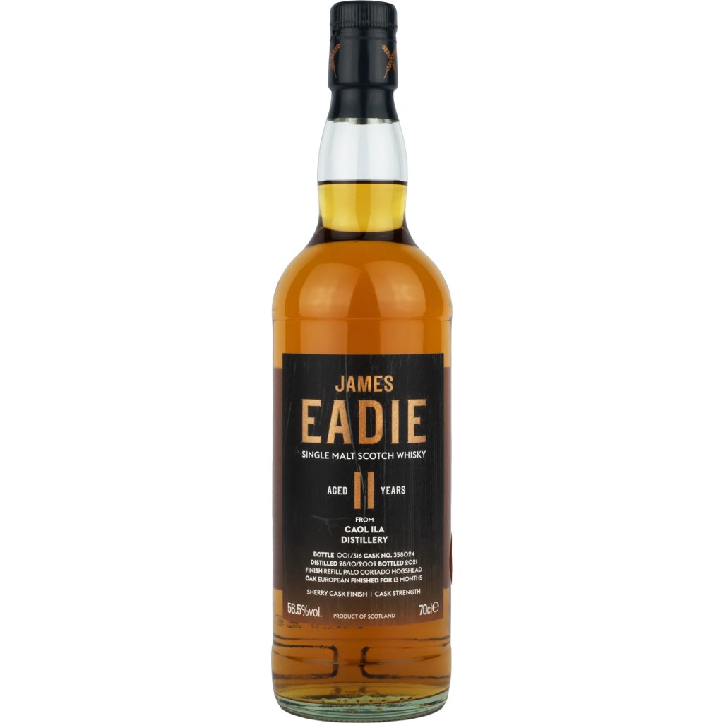Indie-bottled Caol Ila is plentiful, inexpensive, and very rarely bad. Its only “flaw” is that many of the bottlings taste nearly the same, and standout whiskies that surpass “very good” are somewhat rare (I suppose this is a result of the distillery’s focus on whisky for blends). That’s why I jumped on the chance to try one of these James Eadie bottlings. I’ve heard consistently great things about the casks of Caol Ila they’re picking, especially ones finished in choice-quality sherry casks.