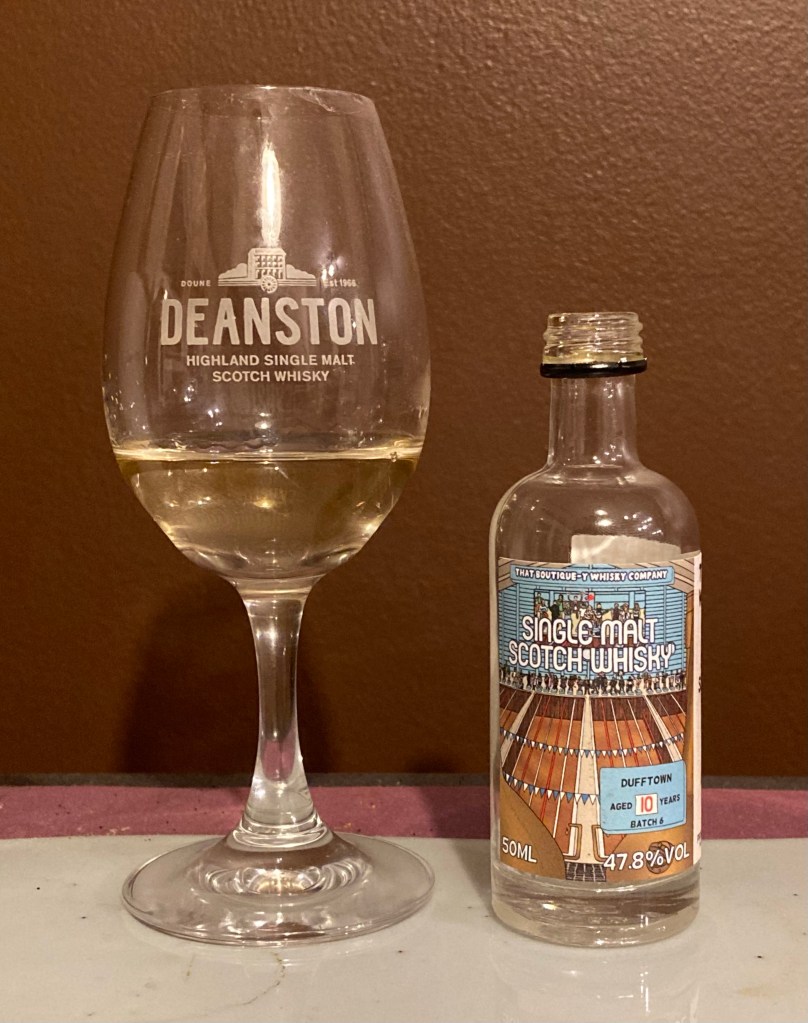 Back with another from a set of minis from TBWC that I bought, all 10-12 years, unpeated, in bourbon casks. Figured it was a good way to get acquainted with the brand. The Macduff and Miltonduff were pretty decent. The Blair Athol, however, was not good. This is the fourth of five, and I’m not filled with confidence. Dufftown is mostly known for being one of the malts used for the Singleton brand. Even the couple of IBs I’ve had haven’t been anything special, and a 10 year old at under 50% is not promising. But we’ll find out. Rested about 15 minutes.