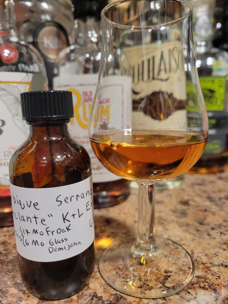 Alambique Serrano is a brand of rum from the same distillery that produces Canada. This distillery is on it’s third generation of distilling, with brothers Isidoro, Rommel, William, and Axel Peralata distilling. This single barrel of rum was made from cane harvested from 2500-3800 feet above sea level. That cane was of the Java varietal and grown by the estate for the rum. The case was crushed and the fresh juice put into pine vats for up to 10 days of wild fermentation. It is then distilled on a pot still. This was put into new French oak cask and aged for 17 months before resting in an open top demi-john for 6 months of resting. It was bottled at cask strength with no additives for K&L Wines in California.