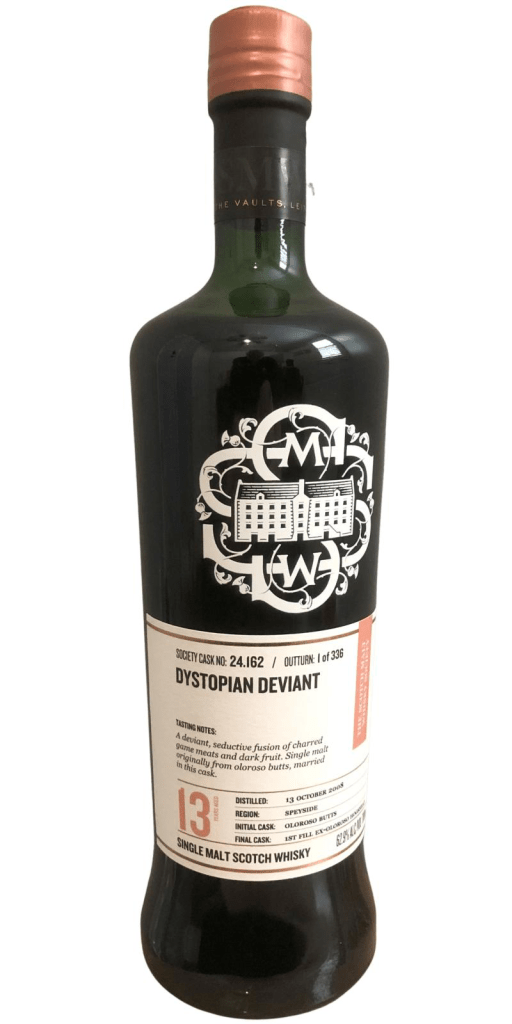Conclusion: Side by side comparison is often helpful, but in this case I’m not sure it was. These are pretty overwhelming–in terms of flavor even more than alcohol (though that too). I found two ounces of these a lot to get through. SMWS has a whole series of these from the same distillation date at Macallan. I didn’t check every single one, but it looks like 24.146-168 are all from that same date, 12-13 years old. I’m speculating they purchased a set of butts, matured them for 10 years, and then split them into different hogsheads for finishing. It’s an interesting approach. The quality is there, though I don’t go for these huge sherry bombs much these days: I favor things a little more subtle now. These are very good for that style; just not what I reach for often. Normally I prefer oloroso, but in this particular instance the finish on the PX was the difference.