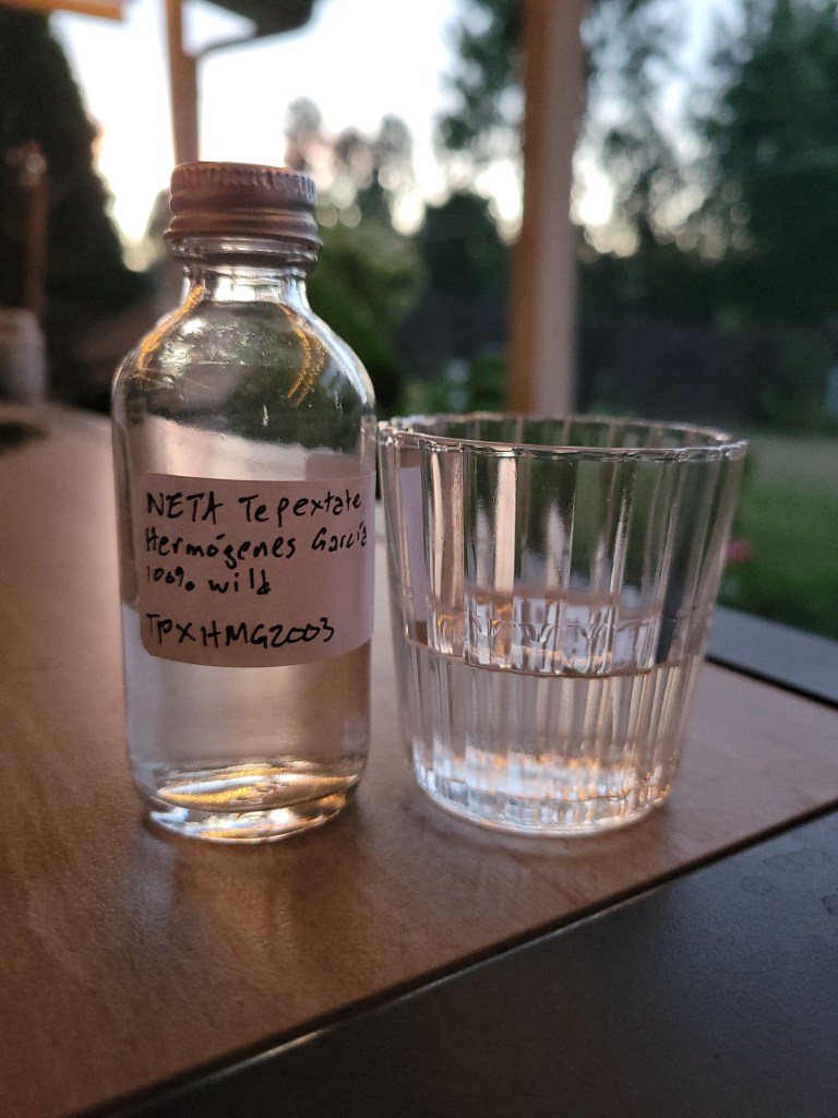 This mezcal was produced by Hermógenes Vásquez + Paula Aquino Sánchez. They harvested 70 pinas of wild Tepextate into this 160 liter batch. This was a mix of quiotudo and guía Tepextate that were then fermented in vats and distilled. This was bottled by Neta, a bottler who works closely with a number of families within Oaxaca.