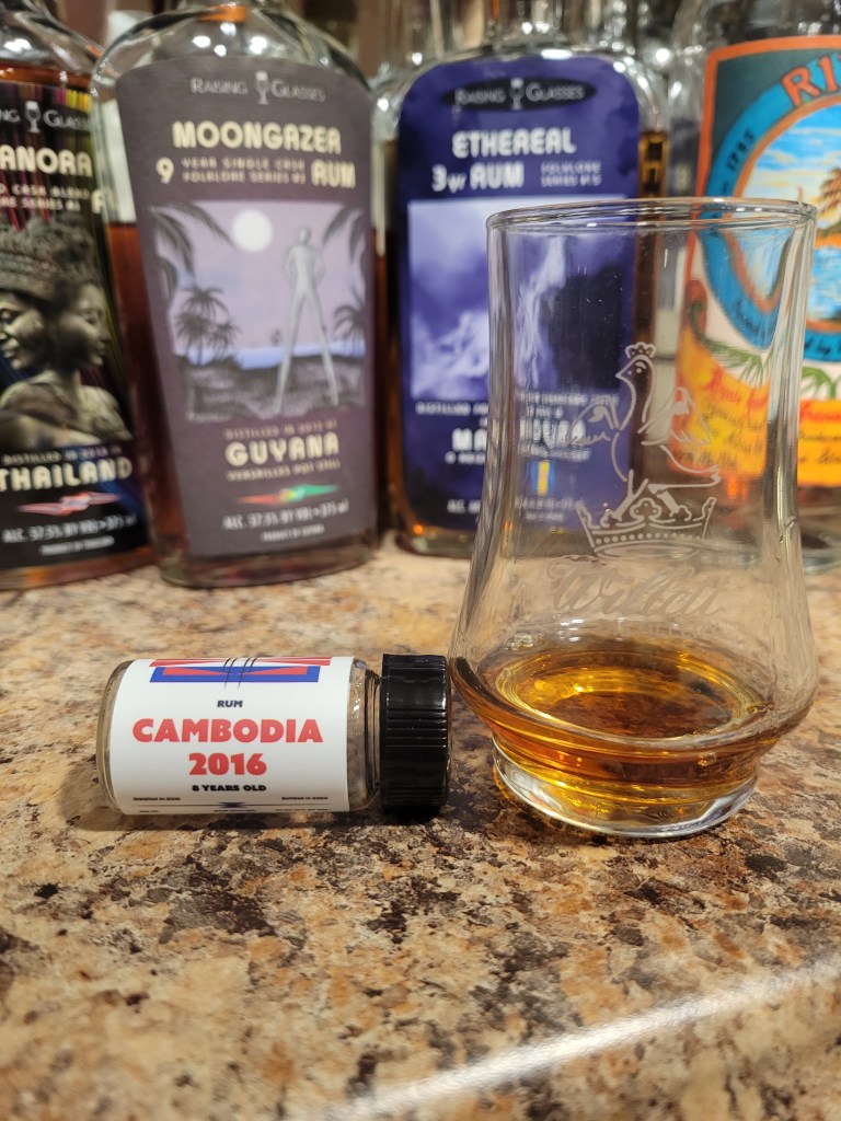 This rum was distilled at Samai distillery in Cambodia which was founded in 2014. This rum is distilled from molasses made from sugar cane crown in the Koh Kong province on a copper pot still after a long fermentation. This bottling aged for 5 years at origin then 3 years in Europe, all in ex-bourbon, before being bottled at cask strength.