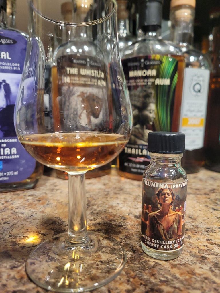 Here we have rum bottled by American independent bottler Raising Glasses from Calgary’s Romero Distillery. This rum was distilled from molasses in a pot/column still and then aged in a Woodford bourbon cask before ageing for 3+ years in a Jerez Oloroso sherry cask before being bottled at a high proof.