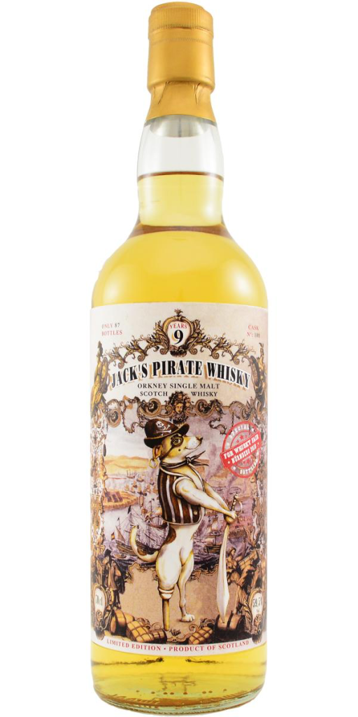 A (wink, wink) unnamed Orkney from Jack Wiebers Whisky World, a German importer and bottler. I’m not sure what the pirate connection is, but it seems to be a series they’ve done. This particular one was bottled for Whisky Fair Nürnberg in 2019. Initially tasted blind, with additional notes after the reveal in italics. Thanks to Whiskery Turnip for the sample. Rested about 15 minutes.