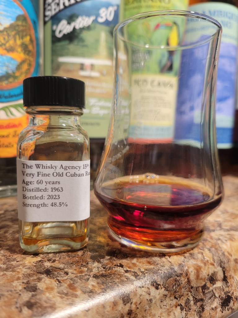 Here we have a bottle of rum bottled by The Whisky Agency to celebrate their 15th anniversary. This is a rum from Cuba that was aged in oak for 60 years before being bottled by the Whiskey Agency.