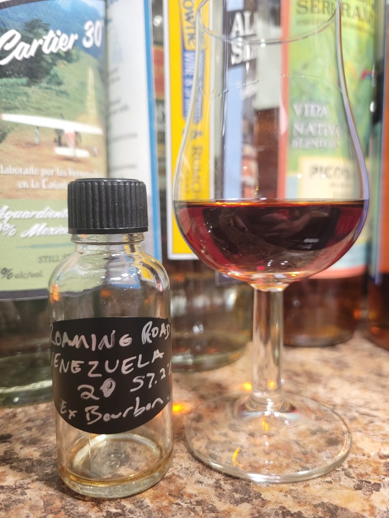 This rum was distilled at a distillery in Venezuela from molasses, distilled on a column still, then aged for 20 years in an ex-bourbon cask then rum cask before being bottled at cask strength with no additives.