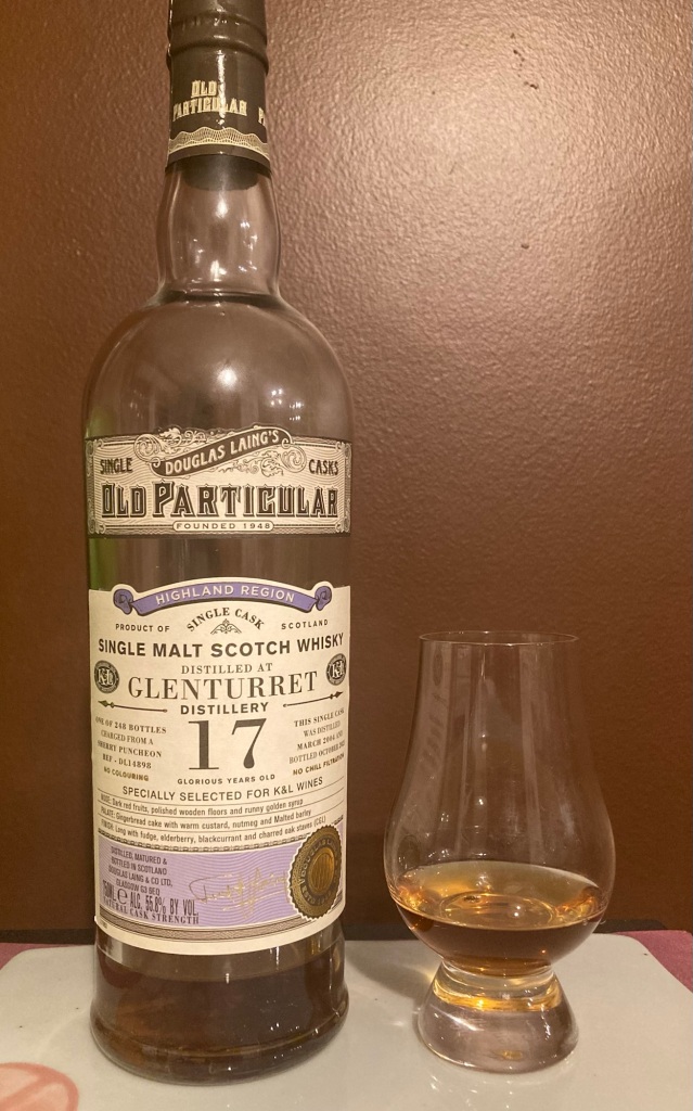 Old Particular is a Douglas Laing brand. More typically bottled at 48.4% (not sure how they arrived at that strength), but these store picks don’t follow that. This was bottled for K&L. Glenturret was recently purchased by Lalique and given a new OB line. It produces mostly unpeated spirits, but there’s some peated which mostly goes under the name Ruadh Maor (or Mhor). Rested about 15 minutes.