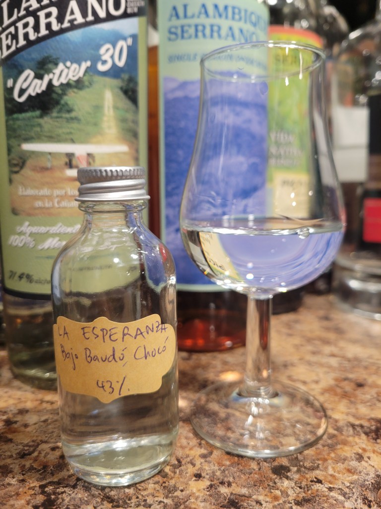 Here we have a bottling of Viche (a Colombian cane spirit) produced by Viche Master Vicky Martínez Cuenú. This viche is produced in Sivirú, Bajo Baudó, Chocó. This viche is produced from “pateperro” sugarcane and “coibatores” varietal, with the pateperro having been planted for over 100 years. It is milled in a mechanical sugar mill, fermented for 18-20 days, distilled in a White aluminum pot still.