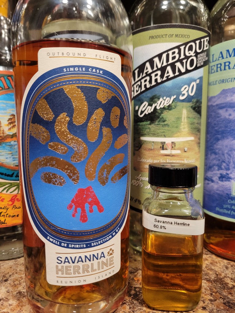 Here we have a very special bottling of rum. This Savanna High Ester Reunion rum is a single cask of rum from the Savanna distillery located on the island of Reunion, a part of the French overseas department. This rum was distilled from molasses on a small alembic pot still after a long fermentation time. It then aged for 8 years an ex-cognac cask before being bottled with no additives.
