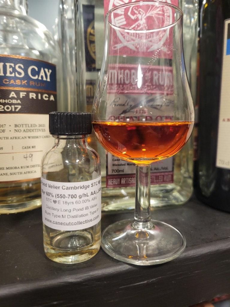 This is a batch of pure single rum from the Long Pond distillery in Jamaica bottled by dependent Italian bottlers Velier. This rum was made from molasses fermented with wild natural yeasts, distilled on a pot still, and aged for 18 years in Jamaica before being bottled at high proof with no additives. It is the STC❤E is a mark of the Cambridge Estate distillery, closed in 1947, reproduced by Long Pond, which clocks in at 550-700 gr/hlpa in terms of esters.