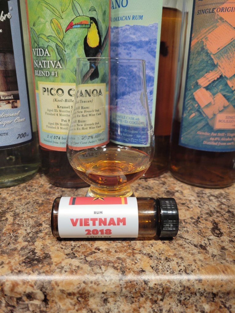 Here we have a botting of rum from La Maison and Velier, the Flag Series, which celebrates rums from different countries. This bottling comes from Vietnam and is a rum made from fresh pressed cane juice. This rum is fermented with wild yeasts before beignb distilled on a French Copper Column still. The rum then aged for 6 years in Vietnam in an ex-cognac cask before being bottled with no additives. This single cask is a USA exclusive bottling.