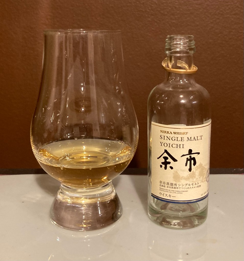 The first distillery established by Masataka Taketsuru in 1934 after returning from Scotland. Looking for a similar climate to Scotland, he settled on the Yoichi district of Hokkaido. Yoichi primarily uses peated malt, and utilizes direct-fired stills. A lot goes into Nikka blends, but some is sold as a single malt. This NAS expression has mostly replaced anything age-stated, though the 10 is being brought back. Reviewed from an official mini. Rested for 15 minutes.