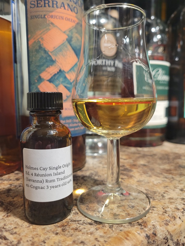 This rum comes from the Savanna Distillery located on Réunion Island. Molasses rum made from local cane was distilled on a stainless steel column still before aging for 3 years in ex-cognac casks at origin before being bottled with no additives by American Independent bottler Holmes Cay.