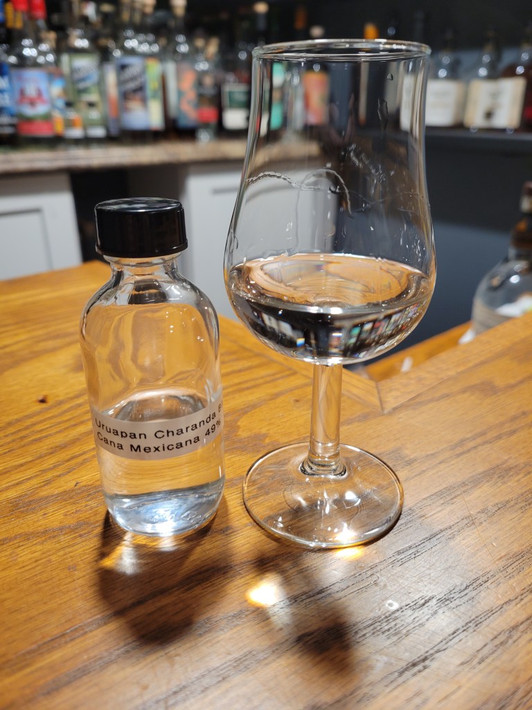 Here we have a bottle of rum from Mexican producer Uruapan. This rum was distilled from single estate Caña Mexicana sugarcane, fermented in the open with wild yeast for one to two week, and bottled with no additives.