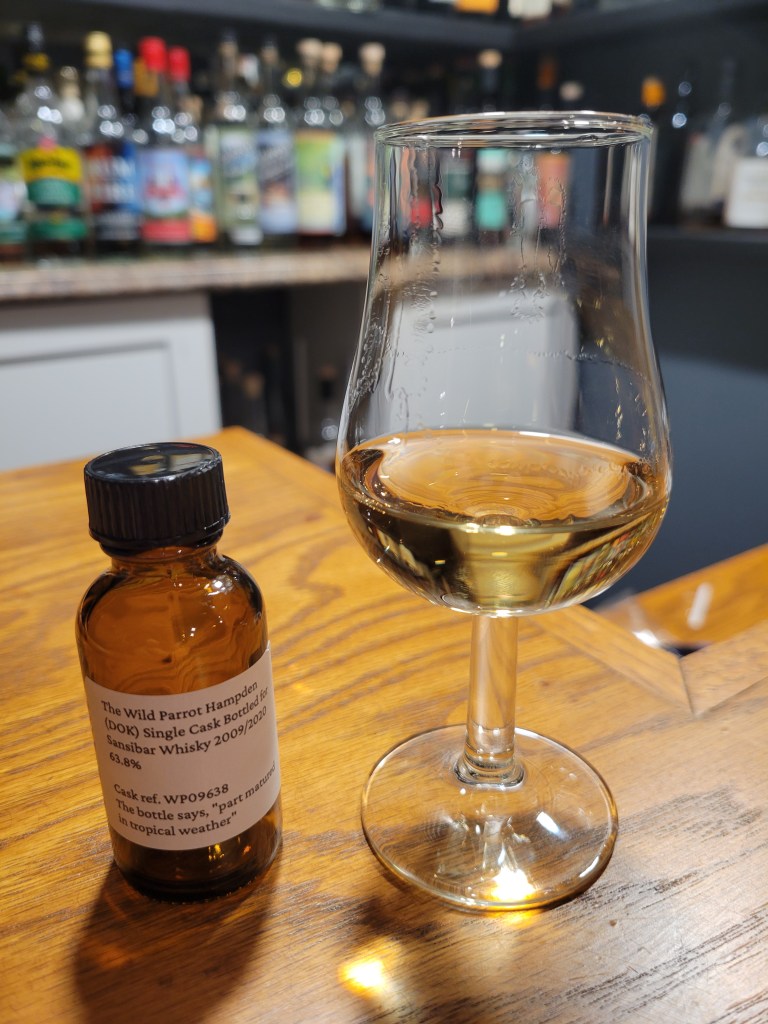 This rum comes from independent bottler Wild Parrot. This rum was distilled at Hampden estate using molasses, water, muck and dunder. IT fermented wildly for a long time before being distilled on a copper pot still. It was then put into an ex-bourbon cask where it aged for 11 years, with 9 of that in Europe and 2 in Jamaica. It was the bottled at cask strength with no additives. This is the DOK marque, Hampden’s highest marque and clocks in at 1500-600 gr/laap.