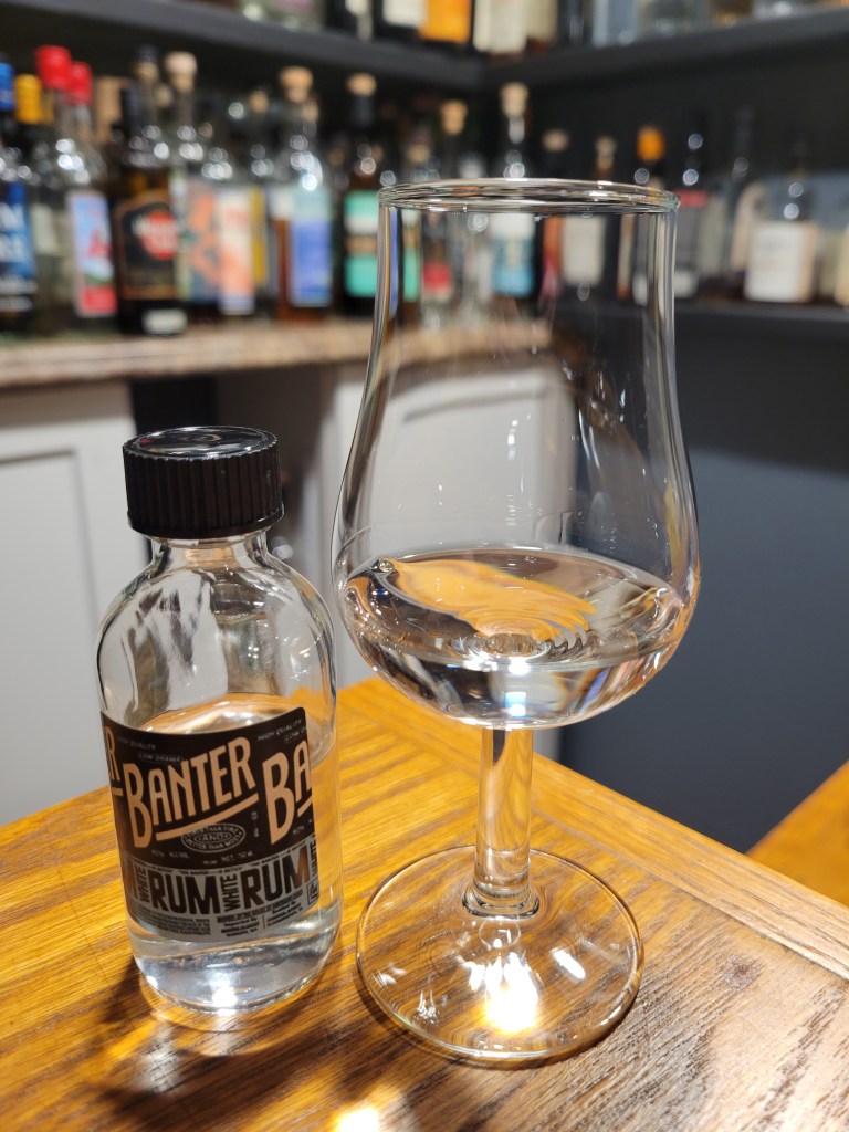 Banter is a line of rums from New American rum distillery American Cane. Banter White here is a blend of rums from different origins of molasses and cane sugar, bottled unaged with no additives. Banter is here to hold us over while American Cane gets up and running producing rum. These blends were selected by Maggie Campbell and co for the US market. Maggie is also the CEO of American Cane.