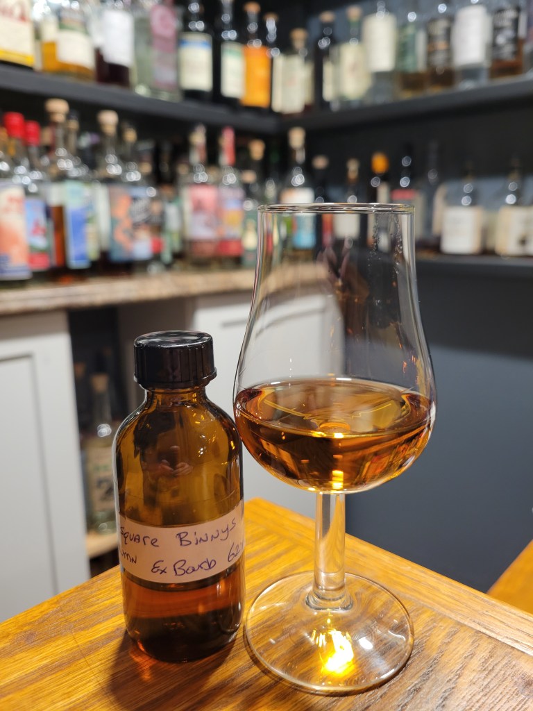 Here we have a Binny’s select of rum from Foursquare. This is a pot and column molasses blend that aged for 12 years at origin in Barbados at the Foursquare distillery. It was bottled with no additives for Binny’s, a liquor store chain in Illinois.